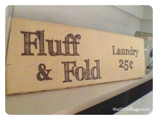I had a vision in mind of a cute little printed burlap laundry sign that