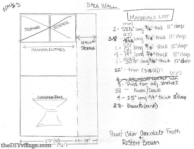 While Matt was at work I measured out the closet and did some quick sketches