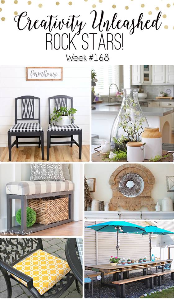 Hello, welcome!  Hopefully you are coming back to join us this week but if you are new here Creativity Unleashed is a place to be inspired by others projects and if you have some of your own share them as well.  There never seems to be a shortage of creativity these days so the more the merrier.  Our link ups include; DIY’s, builds, crafts, recipes, and tutorials.  If you are looking for inspiration you have come to the right place.