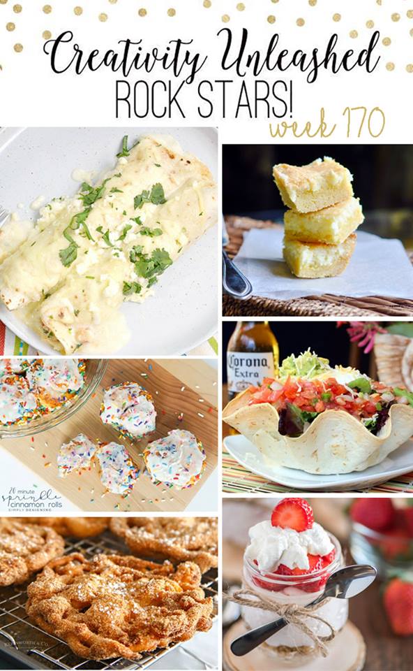 Welcome to Creativity Unleashed! We’ve made a few super exciting changes to the link party to make it even more awesome for you guys! The party itself is the same; as always, we want to see your latest and greatest crafts, DIY projects, and recipes each week! If you created it, link it up here so we and our readers can see it! The new part is the Mega Rockstar contest each week! Every week, each host will pick a Rockstar from the projects that were linked up that week, for a total of six Rockstars. Then we will open up voting for Mega Rockstar of the week. Stop by, vote for your favorite project, and tell your friends to stop by and cast their vote too! Once the voting period is over, the project with the most votes will be the Mega Rockstar of the week!