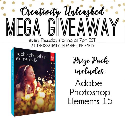 This week our generous Hostess from The Kim Six Fix was awesome enough to offer up a copy of Adobe Photoshop Elements 15. How awesome is she? This is a pretty self explanatory giveaway but for those who aren’t familiar with PS Elements it is a photo editing software. What’s that mean? You can take your photos from meh to AWESOME in no time flat. So don’t miss this giveaway!
