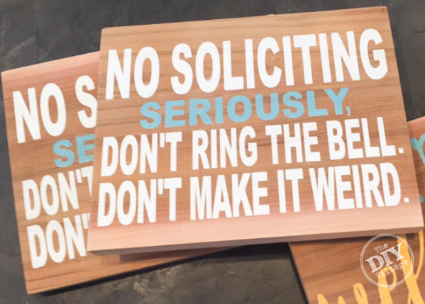 I am so excited about this month’s sponsor for our giveaway! A few months ago a friend approached me and asked if I was willing to make her a sign to keep the solicitors at bay. I chuckled at the wording on the sign and as per her request, worked up a design.